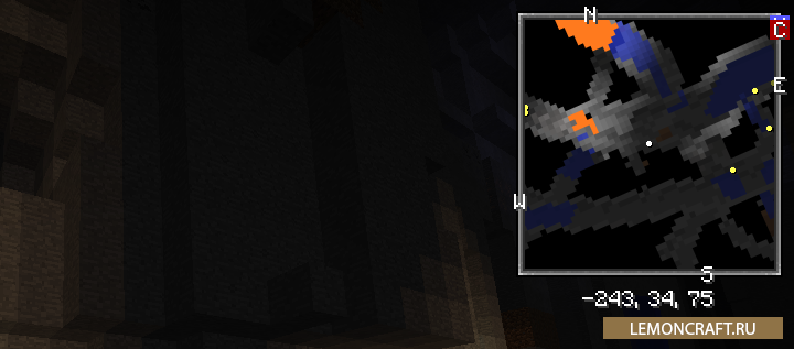 Мод Xaero's Minimap добавляет в игру приятную мини-карту. Это одна из самых лучших мини-карт, которые можно увидеть в игре майнкрафт. Автор мода постарался добавить все нужные элементы. На мини-карте будут отображаться мобы, игроки, пещеры, биом в котором вы находитесь. Каждый элемент имеет свой цвет, что позволяет быстро соориентироваться, где что находится.